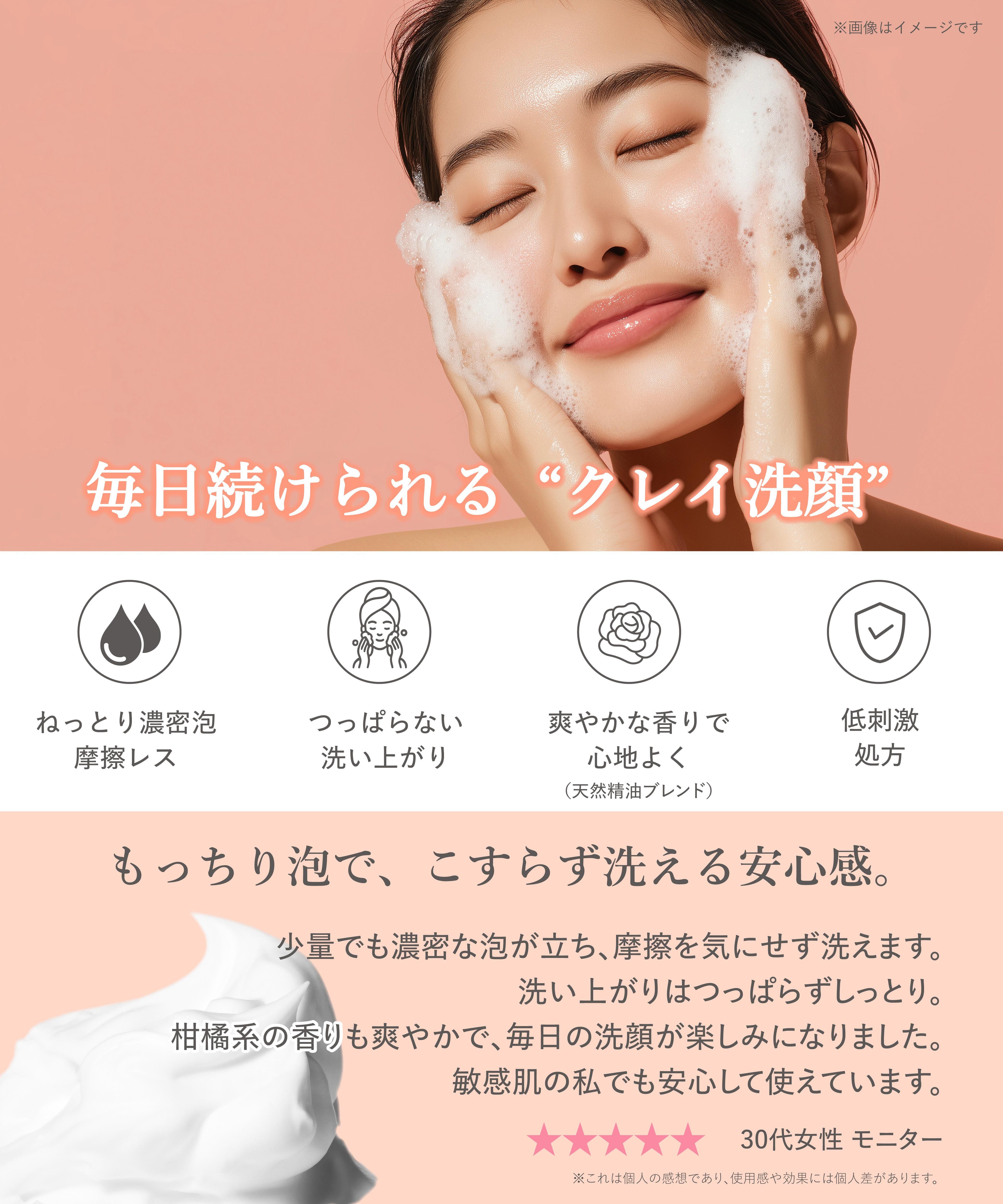 クレイウォッシュで、肌も気持ちも澄みわたる洗顔体験をお試しください。