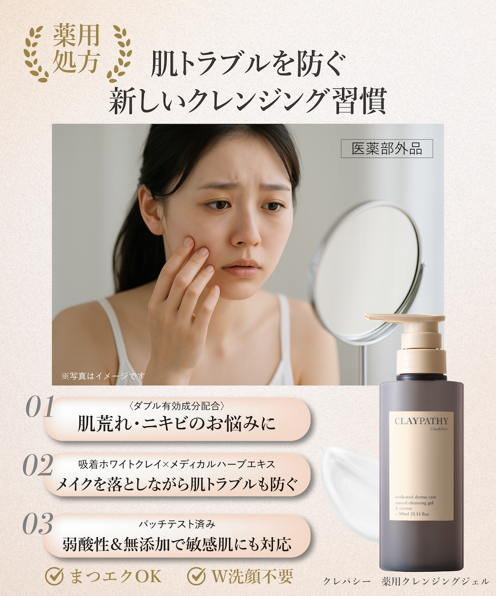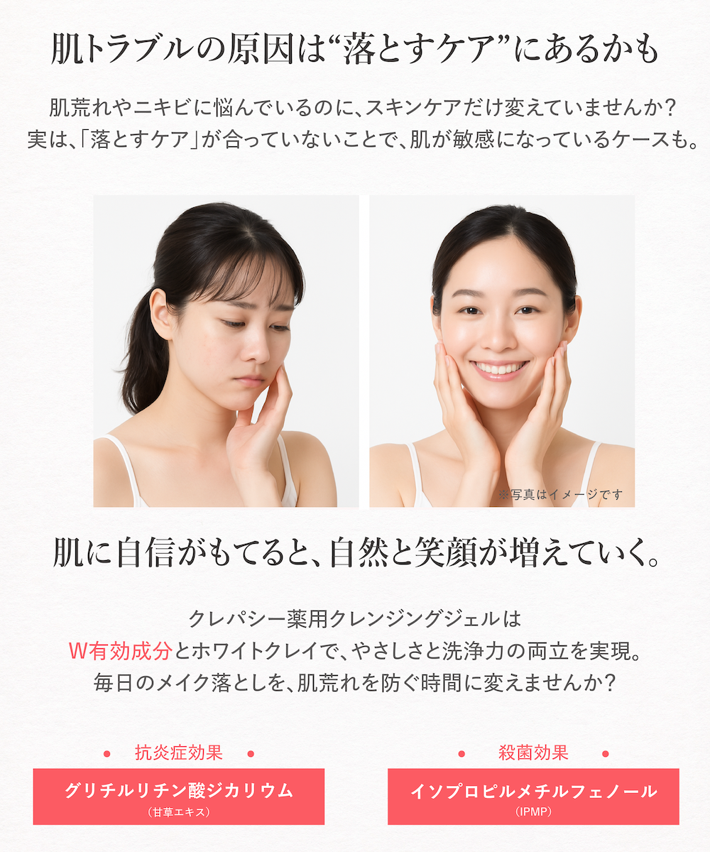クレパシーの薬用クレンジングジェルは、洗うたびに肌を守る発想で開発されました。
