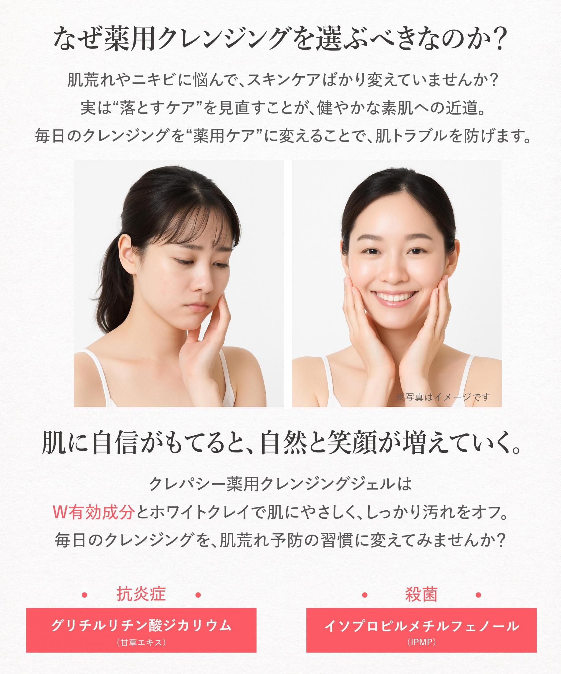 クレパシー薬用クレンジングジェルは、「落とすたびに肌を守る」発想から生まれた薬用クレンジングです。