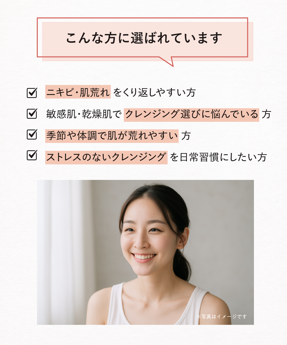 毎日のクレンジングで肌を清潔に保ち、肌荒れ・ニキビを防ぐ薬用ケアが同時に行えます